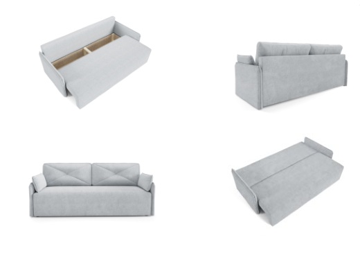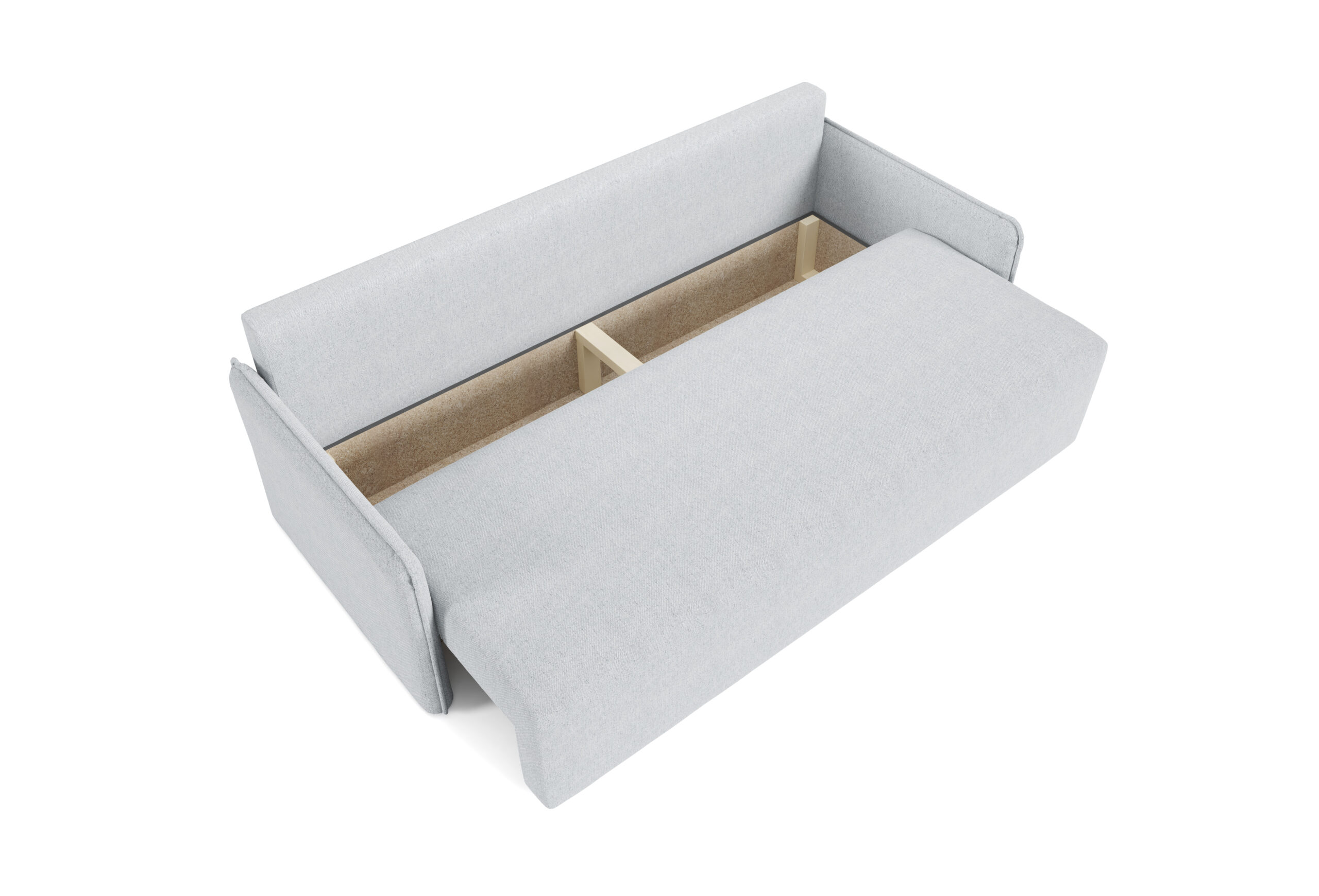 Rozkładana kanapa z pojemnikiem na pościel.