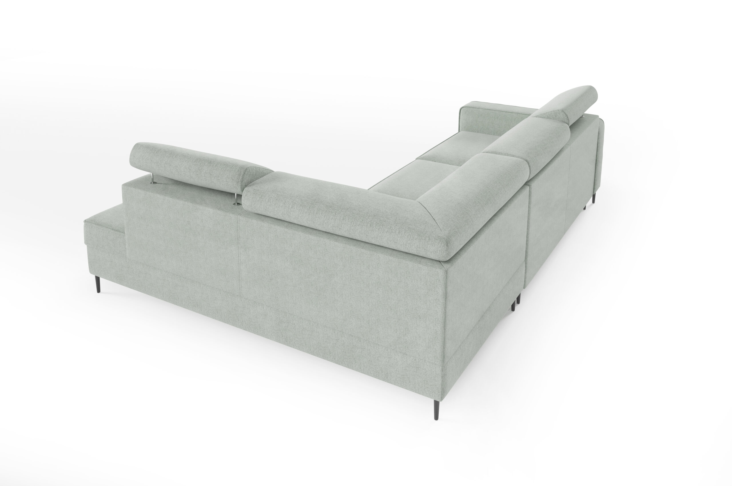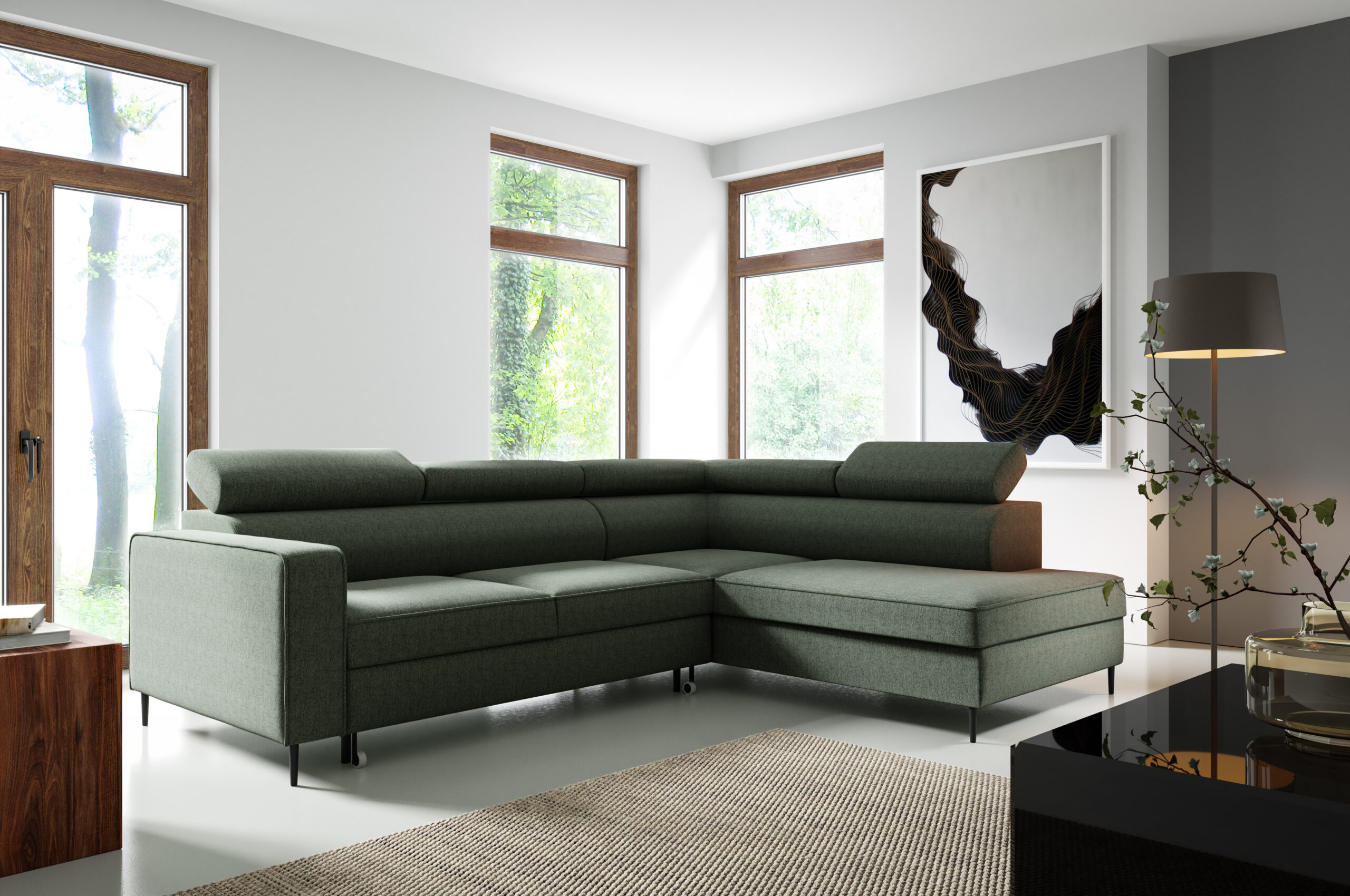 • Estetyczny wygląd, tył mebla tapicerowany. Narożnik może stać na środku pomieszczenia i będzie ładnie wyglądać.