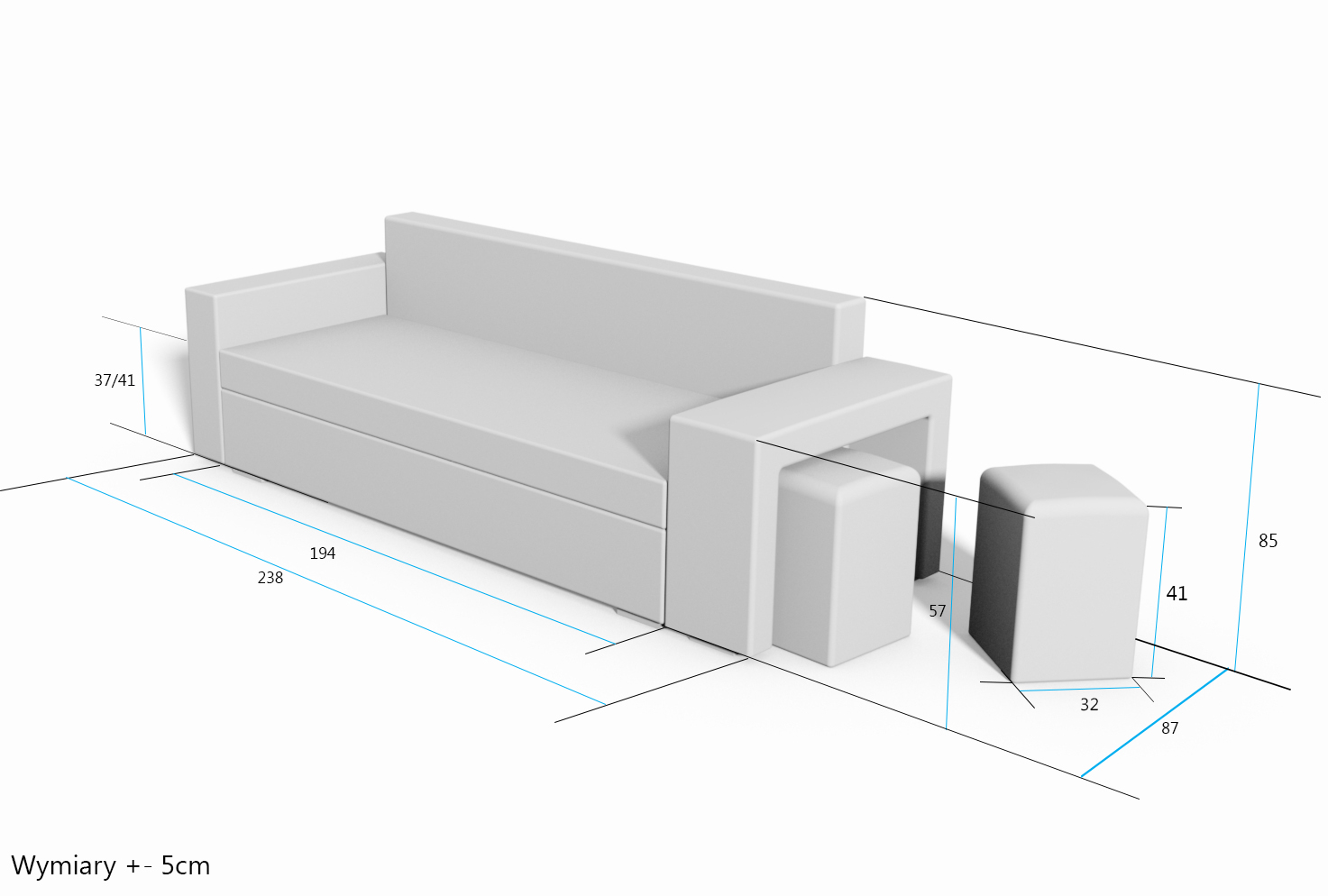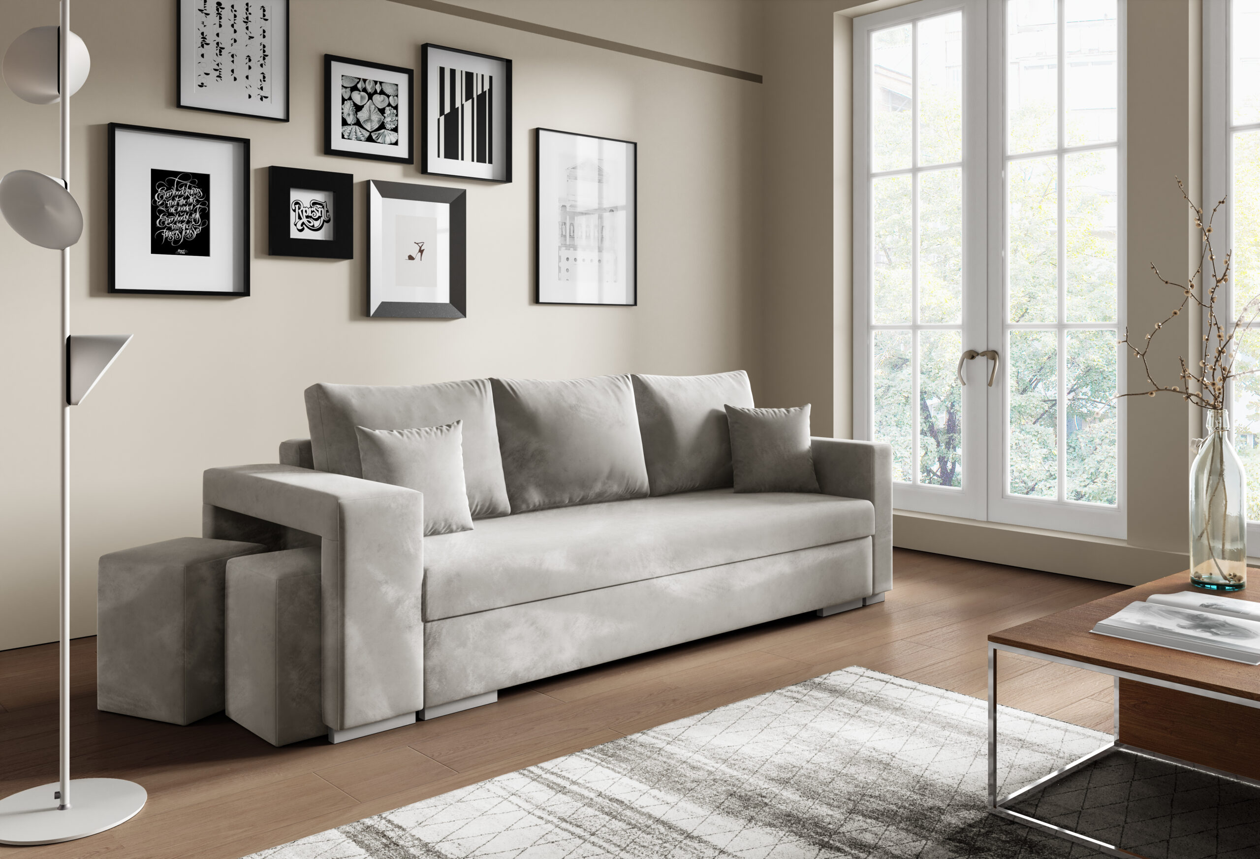 Prezentujemy wygodną i praktyczną kanapę KALSA w zestawie z dwoma pufami.